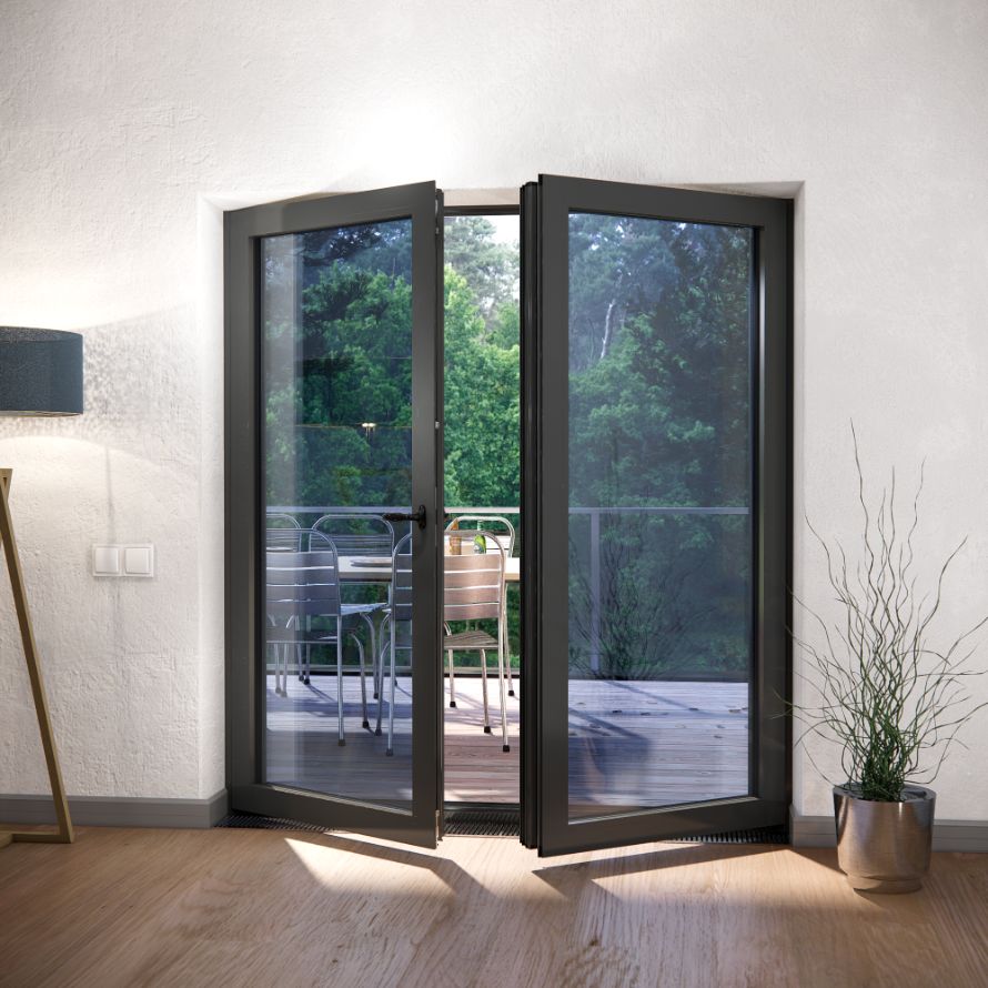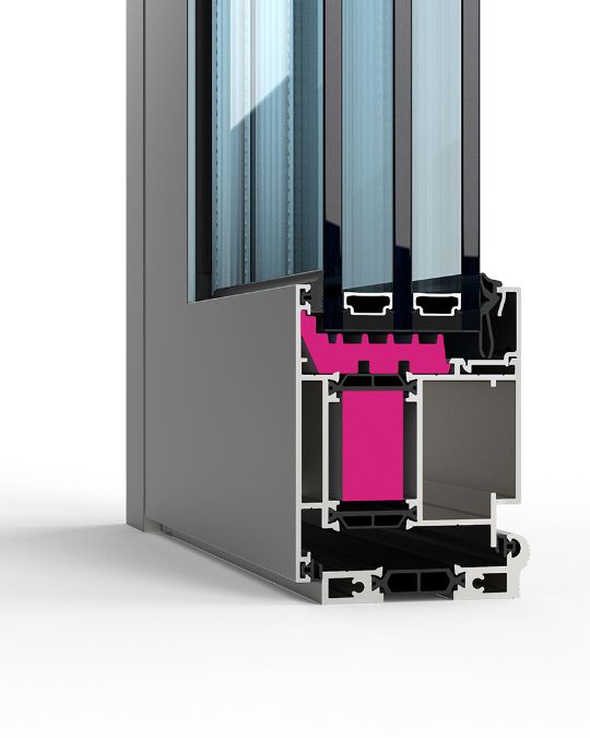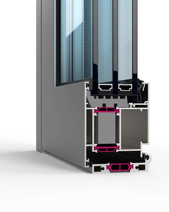 Современные алюминиевые двери, вопреки распространенному мнению, являются не менее, а иногда и более энергоэффективными, чем ПВХ-конструкции. Повышенная теплоизоляция достигается благодаря терморазрывам, термоизолирующим вкладышам и максимально широким стеклопакетам, которые невозможно использовать в ПВХ-конструкциях